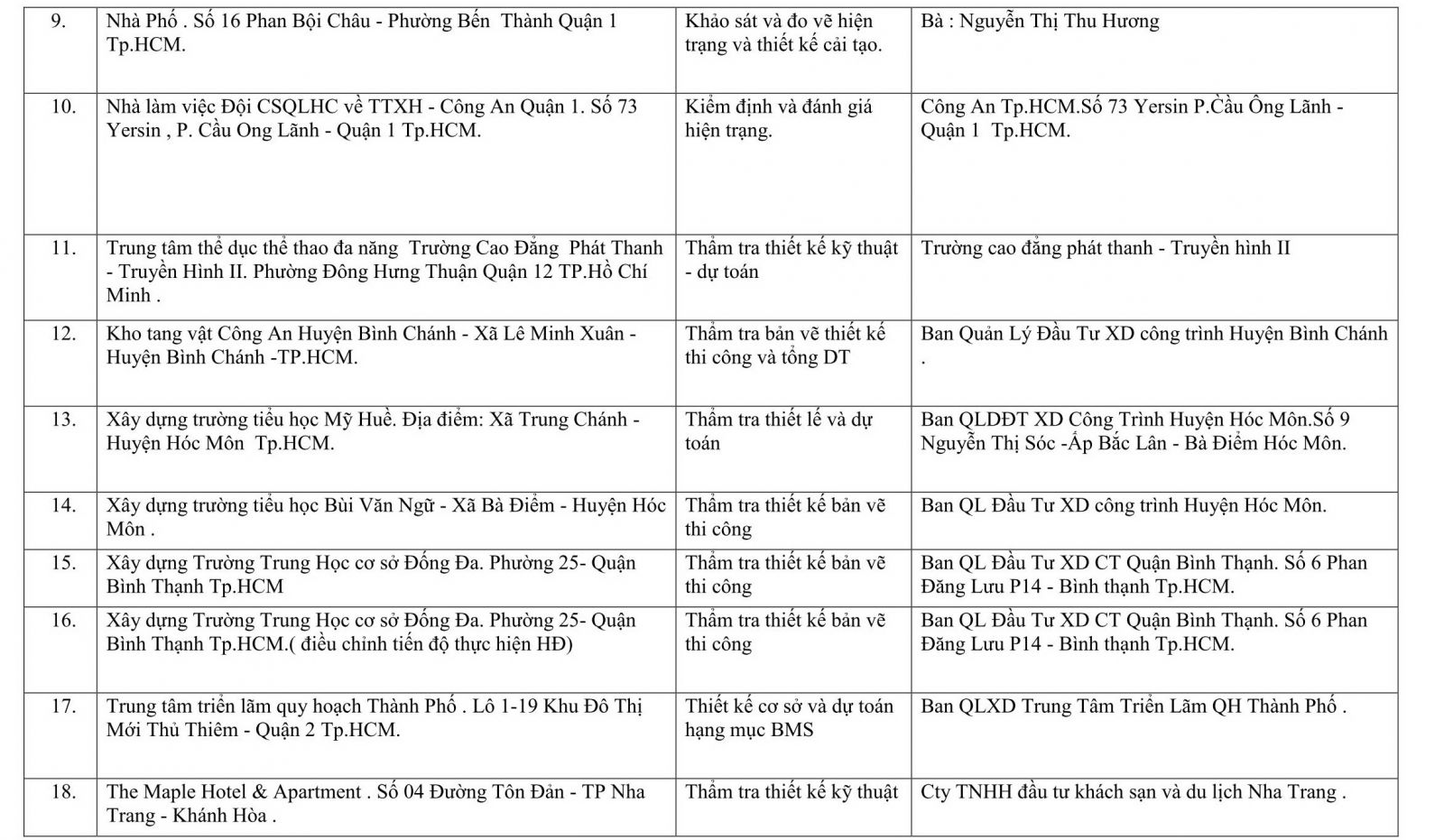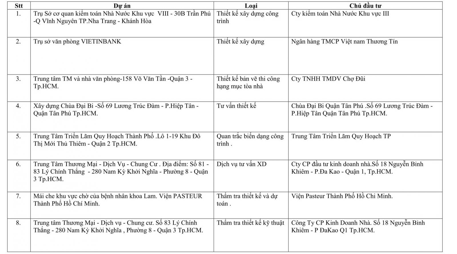 Một số dự án do đơn vị thực hiện: