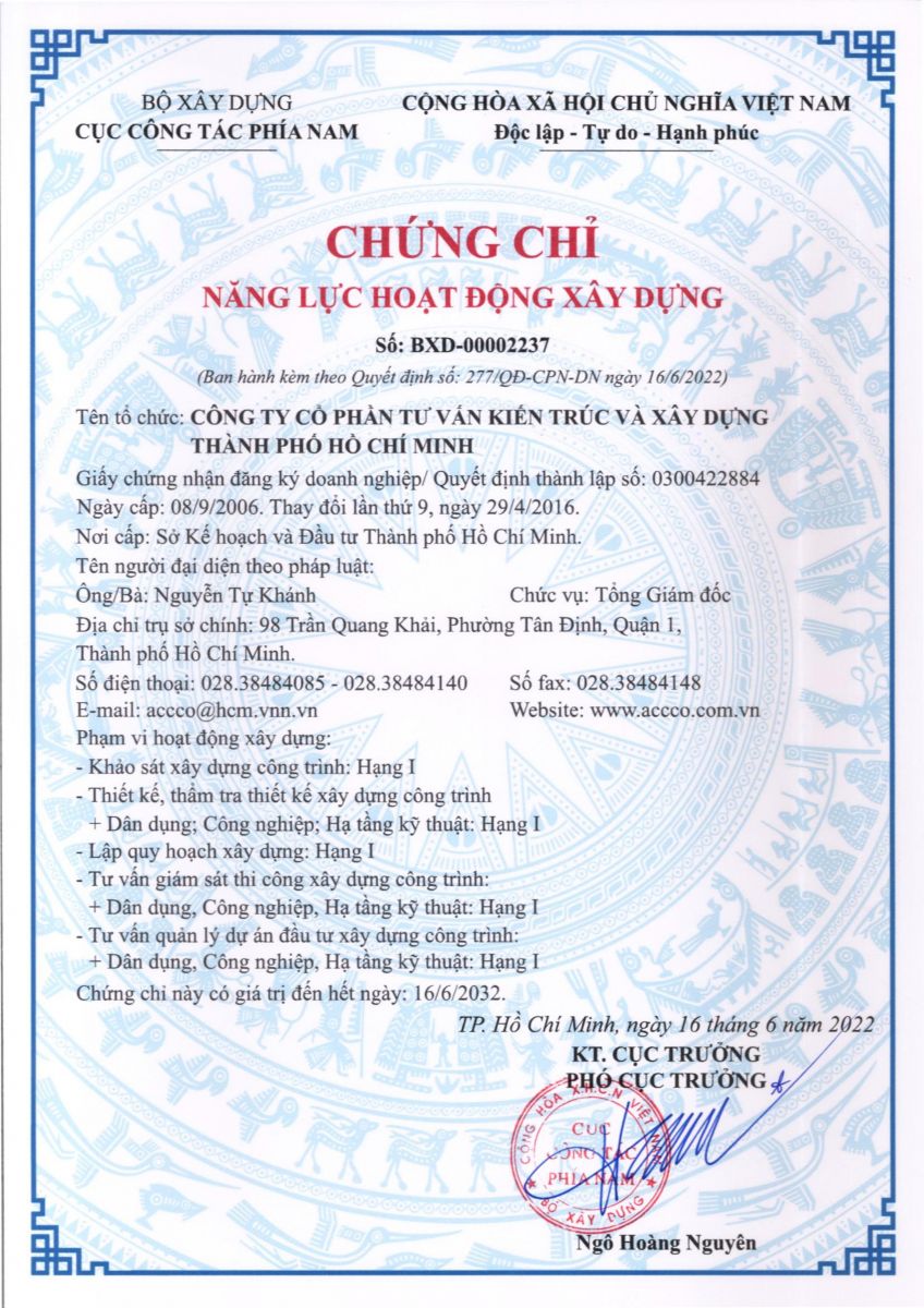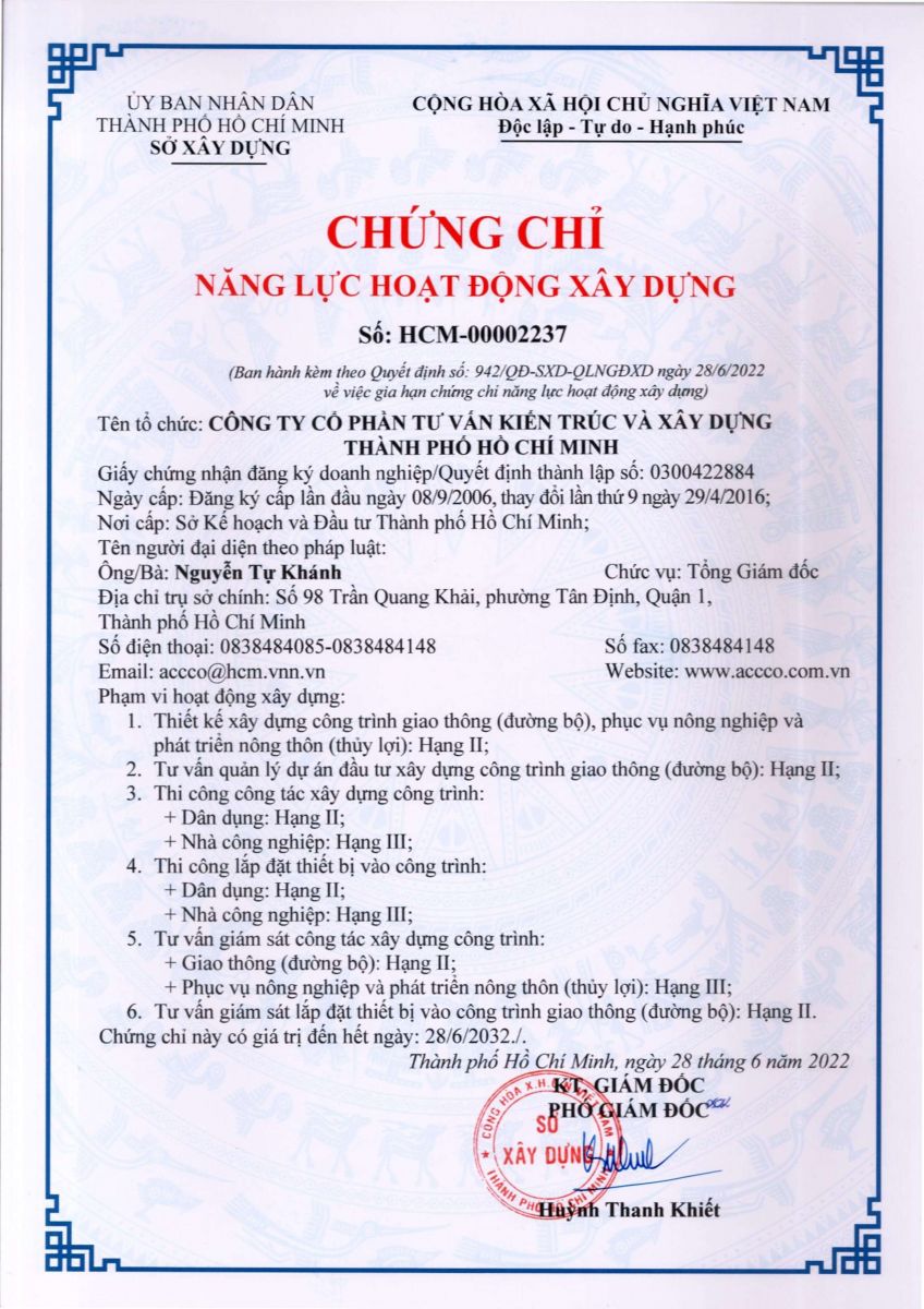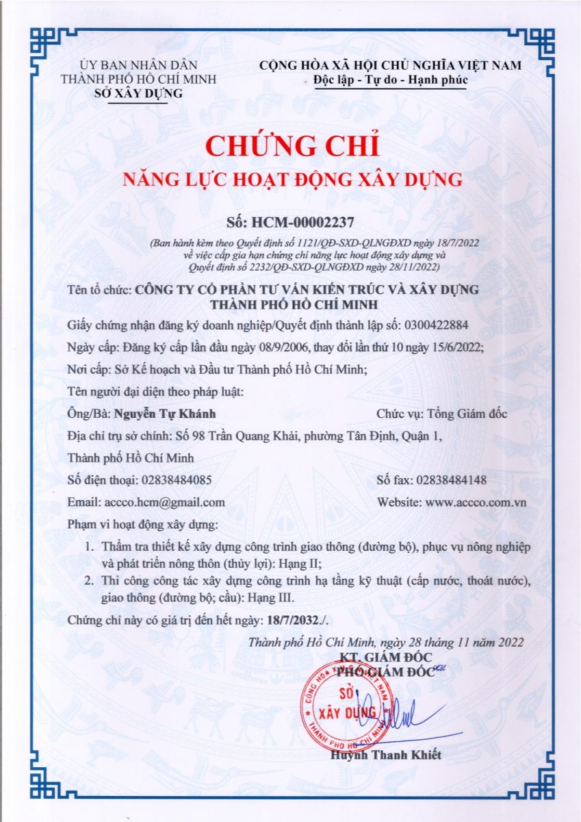 CÔNG TY CỔ PHẦN TƯ VẤN KIẾN TRÚC & XÂY DỰNG TP.HỒ CHÍ MINH