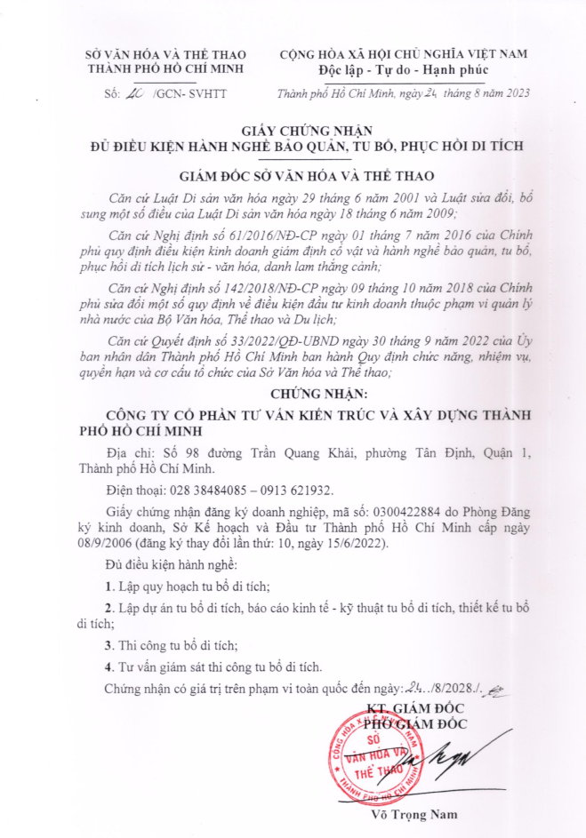 CÔNG TY CỔ PHẦN TƯ VẤN KIẾN TRÚC & XÂY DỰNG TP.HỒ CHÍ MINH