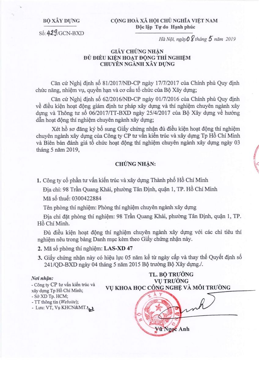 CÔNG TY CỔ PHẦN TƯ VẤN KIẾN TRÚC & XÂY DỰNG TP.HỒ CHÍ MINH
