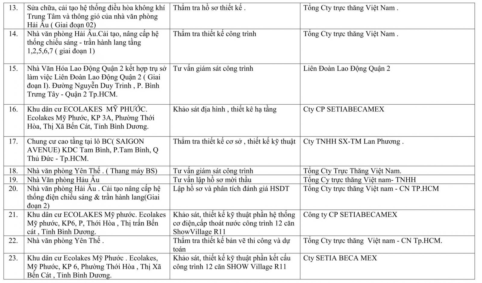Một số dự án do đơn vị thực hiện: